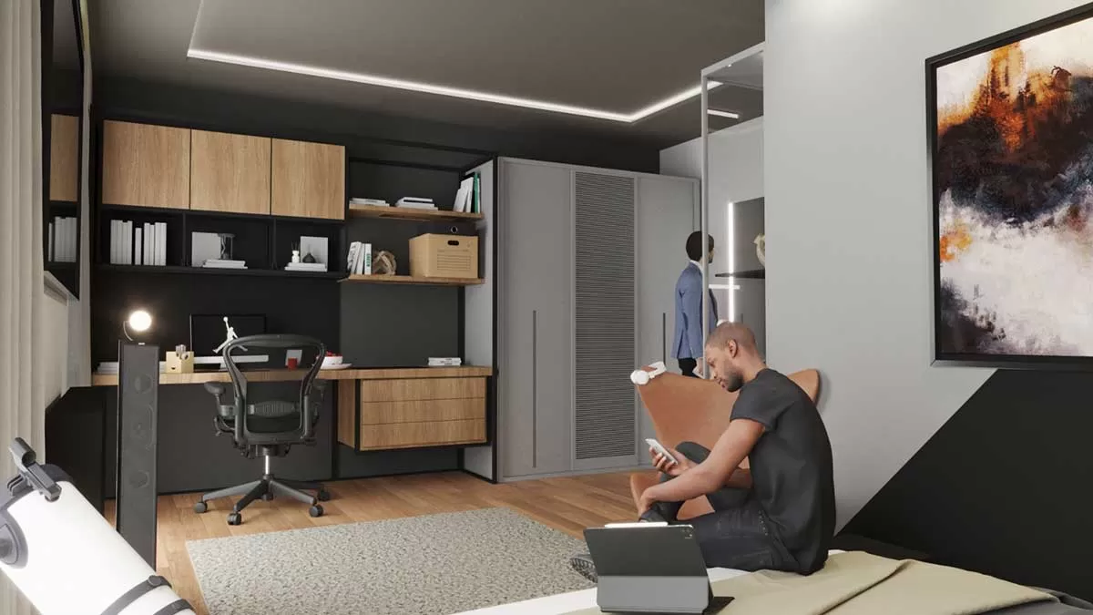 Kişiye özel tasarlanan ofis uygulamasında kullanılan güncel malzemeler ofis atmosferine uygun aynı zamanda kişinin kendi zevklerini de barındıran huzurlu bir çalışma ortamı sağlamak amaçlanmıştır.